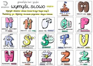 Wymyśl słowo, przeliteruje je, wykonuj ćwiczenia przypisane danym literom.