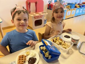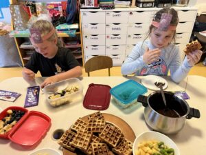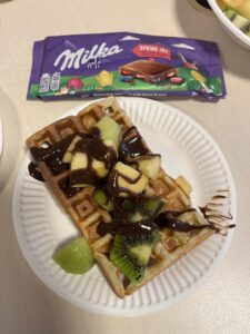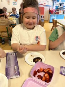 i dotyku. Wspólne dekorowały i zjadały gofry z owocami polane ulubioną czekoladą.