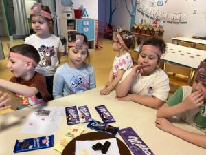 15 kwietnia grupa Niebieskie Misie obchodziła Dzień Czekolady. Dzieci poznały proces jej powstawania od ziarna kakaowca, dalekich plantacji aż po tabliczkę czekolady w naszych sklepach. Taki dzień to nie tylko jedzenie słodyczy, ale również okazja do rozwijania zmysłu smaku, zapachu