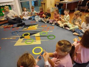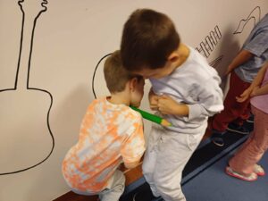 i pastelowych – oraz o tym, jak możemy je wykorzystać w codziennych pracach plastycznych. Przedszkolaki z wielkim zaangażowaniem tworzyły barwne rysunki, rozwijając swoją wyobraźnię, sprawność manualną i kreatywność.