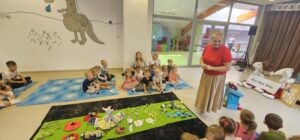 📖 Tematem przewodnim była książka „Pszczele wesele”, która zabrała dzieci w fascynującą podróż do świata pszczół. Rozmawialiśmy o roli pszczół w przyrodzie, a także o smakach i walorach miodu. Pani Alina w ciepły i obrazowy sposób uświadomiła dzieciom, jak ważna jest obecność pszczół