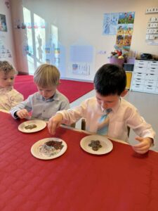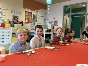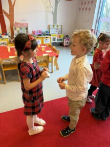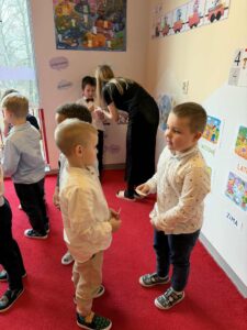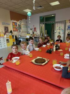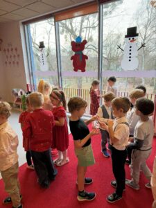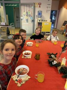 W świątecznej atmosferze dzieci zasiadły przy pięknie udekorowanych stołach, składały sobie życzenia, słuchały kolęd i poznawały bożonarodzeniowe tradycje.