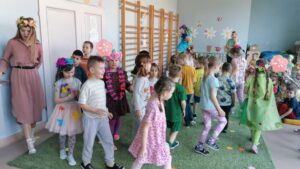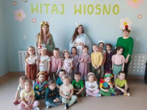 Wspólnie śpiewaliśmy wesołą, wiosenną piosenkę, aby przywołać ciepłe dni i budzącą się do życia przyrodę. Dzieci wzięły udział w pokazie mody wiosennej, prezentując barwne stroje inspirowane pierwszymi oznakami wiosny. Pani Wiosna przygotowała dla dzieci ciekawe zagadki, które wszyscy chętnie rozwiązywali. To był wyjątkowy dzień, pełen wiosennej energii i radości.