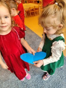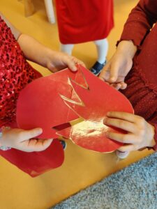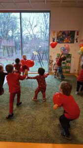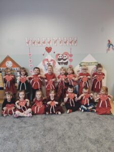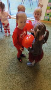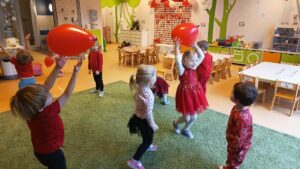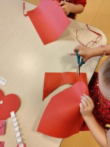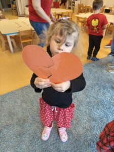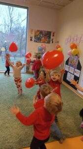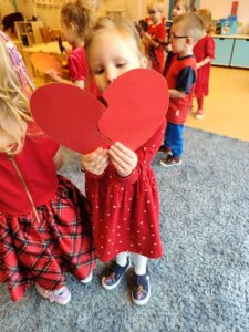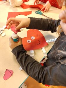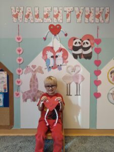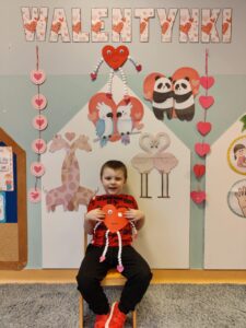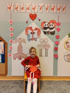 Oprócz radosnych gier i zabaw było też tworzenie prac plastycznych – walentynek dla kochanych rodziców i bliskich. Większość zabaw oparta była na scenariuszu z projektu Zdrowo i Sportowo.