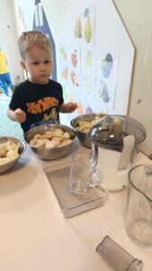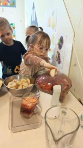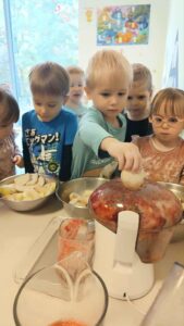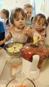 ich wygląd, smak i to, co kryje się w środku. Rozmawialiśmy o tym, dlaczego warto je jeść i jak pomagają nam być zdrowymi. Były zabawy ruchowe, twórcze zajęcia plastyczne, a wśród nich nasze „ziemniaki-cudaki” 🥔🎨 – wesołe i pełne fantazji! Na zakończenie tygodnia przygotowaliśmy wspólnie pyszny sok owocowo-warzywny! Było smacznie, zdrowo i bardzo kolorowo! 🍎
