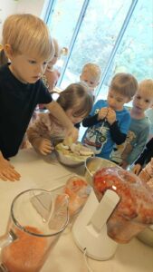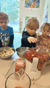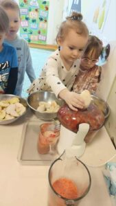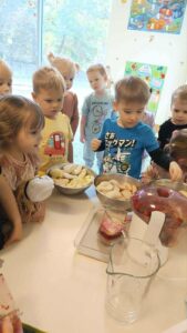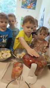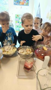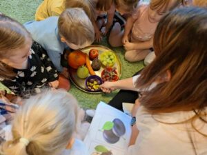 W tym tygodniu dzieci z grupy Zielone Krasnoludki poznawały niektóre warzywa i owoce –