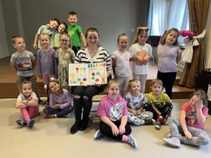 Dzieci młodsze uczestniczyły w spotkaniu poświęconym kolorom. Na początku pani bibliotekarka przeczytała bajkę nawiązującą do tematu, a następnie dzieci losowały kolorowe piłeczki z „magicznej skrzyni” i opowiadały, z czym kojarzy im się dany kolor. Było dużo śmiechu i ciekawych skojarzeń – niektóre naprawdę nas zaskoczyły!