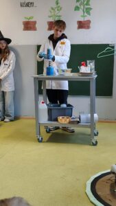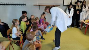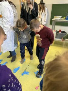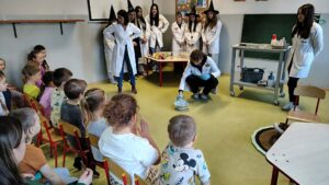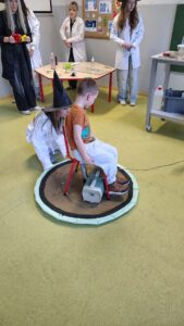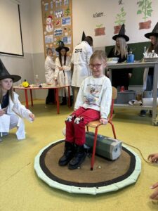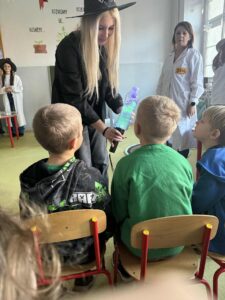 Podczas wizyty przedszkolaki wzięły udział w niezwykłych zajęciach z chemii i fizyki.