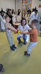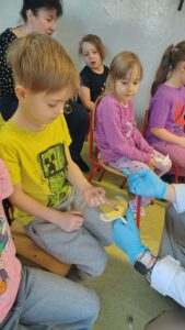 Dzieci miały okazję zobaczyć fascynujące doświadczenia oraz obserwowały prawa fizyki w praktyce, które rozbudziły ich ciekawość świata. Wykonały również zimową pracę plastyczną.